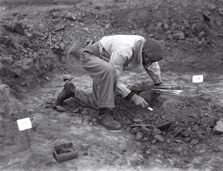Lumír Jisl na výzkumu, Opava-Kateřinky, Nad Sádrovcovou studánkou, 23. 9. 1948.