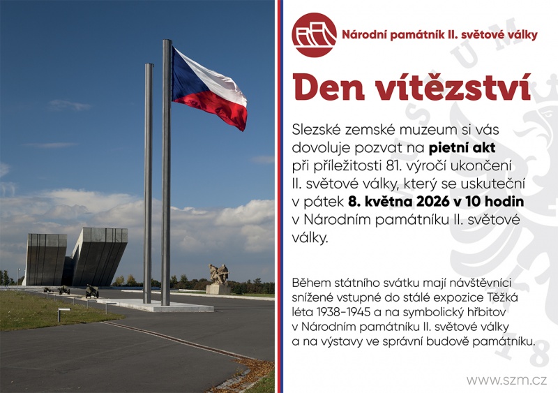 Slezské zemské muzeum si vás dovoluje pozvat na pietní akt při příležitosti 81. výročí ukončení II. světové války, který se uskuteční v pátek 8. května 2026 v 10 hodin v Národním památníku II. světové války.
